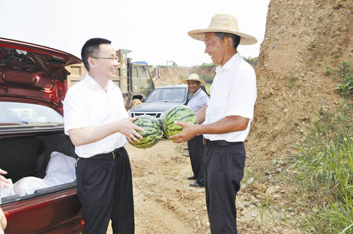 7月9日,宜昌伟德国际1946磷石膏输送管道进行新旧管线并线,公司10余名管道维修人员顶着炎炎烈日,挥汗如雨,抓紧时间抢修,以确保公司生产顺利进行。当日下午,宜昌伟德国际1946党总支书记王德宜(左)为抢修人员送去西瓜、矿泉水等物品。