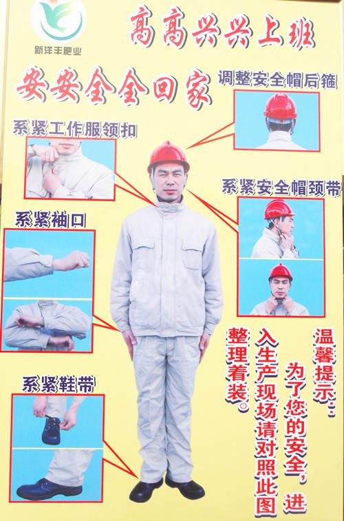 标样从安全帽的穿戴、帽檐帽带系法与整理要求、前后穿戴标准,工作服的穿着、整理要求、全身标准,劳保鞋的规范穿着等方面作出示范;要求全厂职工按照标准整理,实现劳保着装的规范化、统一化,形成良好行为习惯,提升员工自身素养,提高现场管理综合水平,为安全生产提供基础保障。