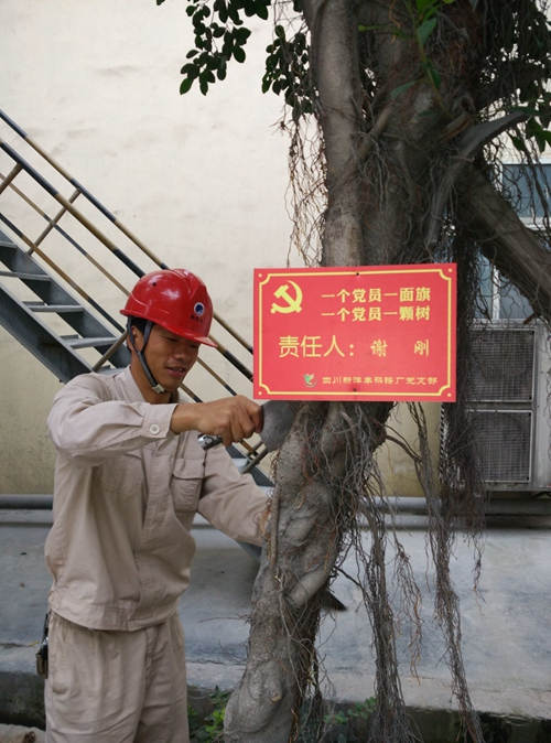 近日,四川伟德国际1946磷铵厂在全体党员中开展了“‘树’形象亮身份”活动,将厂区内的80颗榕树全部细化给每个党员,由党员负责浇水、修剪等日常维护工作,并在榕树上悬挂责任牌,接受员工监督。
