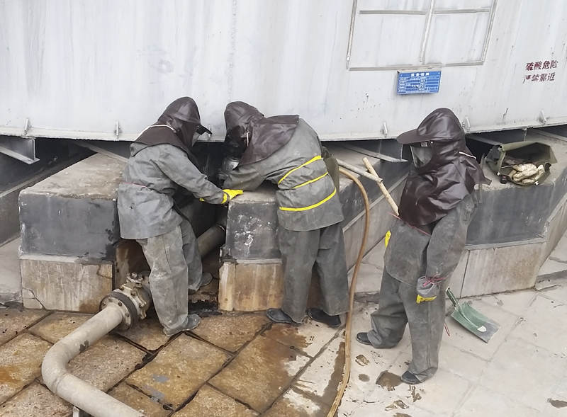 四川伟德国际1946硫酸厂在演练活动中抢修酸泵