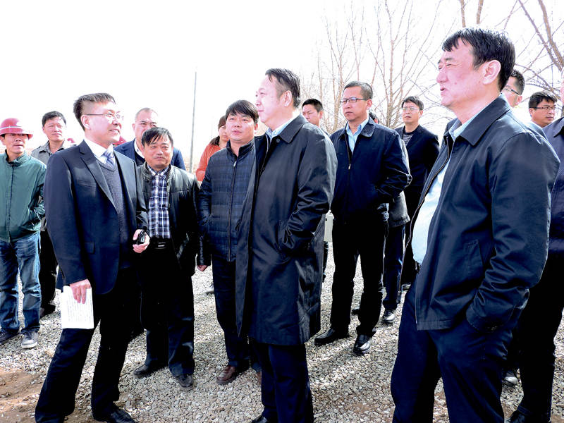 松原市委书记李相国(前排中)在扶余市市长刘永德(前排右)的陪同下到吉林伟德国际1946工地现场调研
