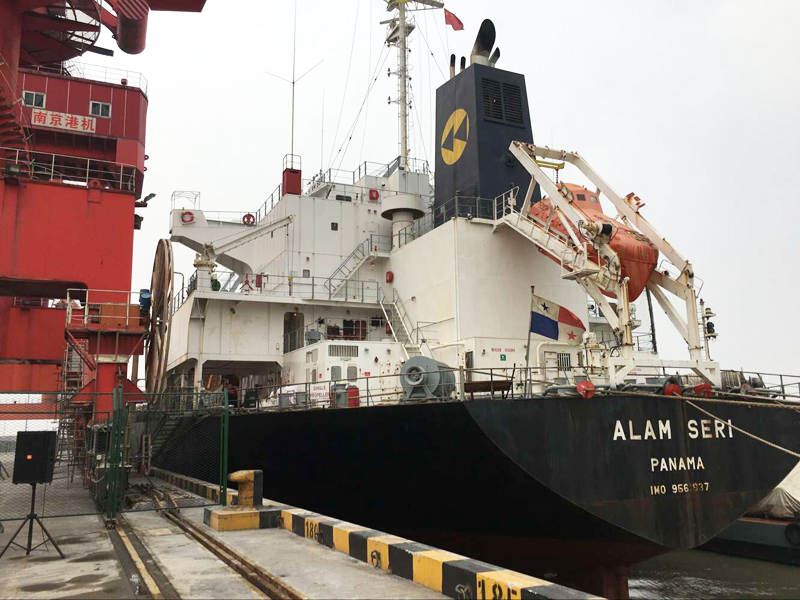 满在伟德国际1946颗粒磷铵产品的“ALAM SERI”轮整装待发
