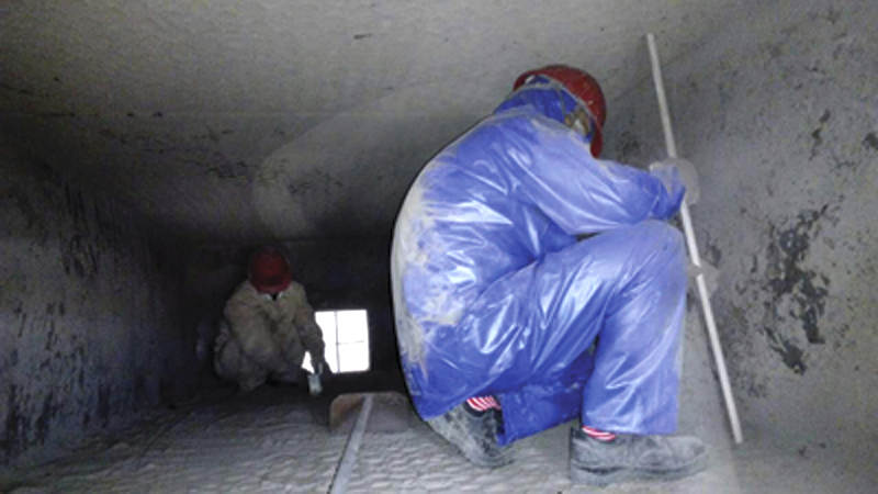 此次抢修过程中,清理锅炉管道烟道灰属最艰难的一项任务。为在最短时间内完成清理工作,保证正常开车,检修工们在只有60厘米高的管道空间内,或蹲、或跪,用废旧PVC塑料管,积极清理着烟道灰。历经5个多小时的艰苦奋战,他们一鼓作气将锅炉高低温过热器、省煤器、空气预热器及集汽联箱内的烟道灰全部清理完毕。