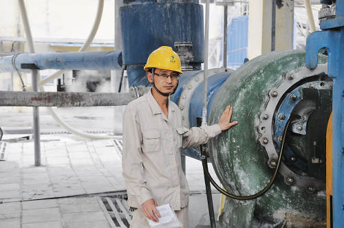 2015年,磷铵车间生产由于粉尘影响,导致内返料螺栓检修异常频繁。每次接到车间检修报告,无论身处何地,他都会在第一时间赶赴生产车间安排检修。有时由于抢修任务紧,在造粒机、干燥机等设备余温较高的情况下,为了能及时完成抢修任务,迅速恢复正常开车,他每次都是第一个钻进设备内部,带领车间职工一道,圆满完成检修任务。