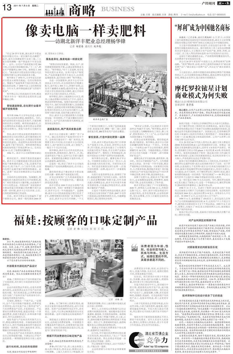 杨华锋1996年大学毕业后进入伟德国际1946公司山东菏泽办事处,做销售员。当时,国内农资经营市场还没有放开,只能依赖国营农资公司销肥。畸形的流通形式,衍生出惰性的业务通道:很多化肥企业营销员的全部精力,便是与农资公司搞好关系。