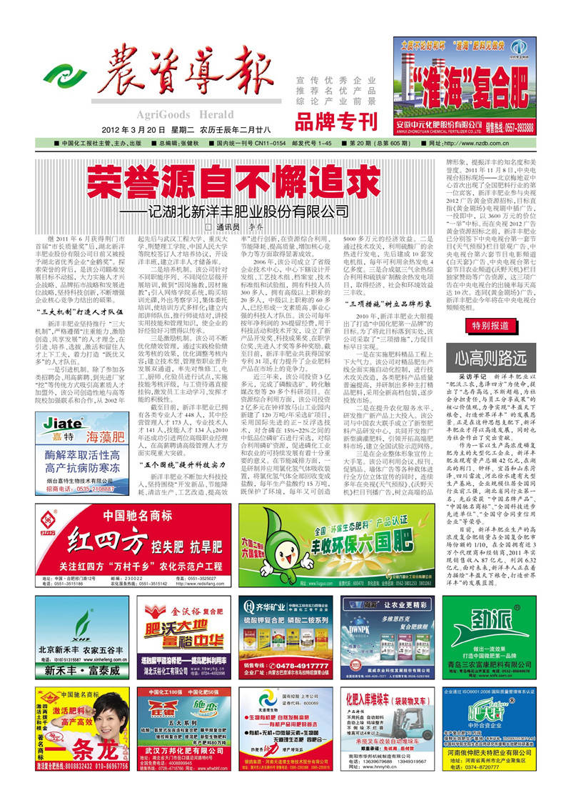 三是在企业整体形象宣传上大手笔。该公司利用会议、报刊、促销品、墙体广告等各种载体进行全方位立体宣传的同时,连续多年在央视《天气预报》、《沃野天机》栏目刊播广告,树立高端的品牌形象,提振洋丰的知名度和美誉度。2011年11月8日,中央电视台招标现场--北京梅地亚中心首次出现了全国肥料行业的第一位宾客,伟德国际1946肥业参与央视2012 广告黄金资源招标,目标直指《黄金剧场》电视剧中插广告,一投即中,以3600万元的价位“一举”中标。而在央视 2012 广告黄金资源招标之前,伟德国际1946肥业已分别签下中央电视台第一套节目《天气预报》栏目景观广告、中央电视台第六套节目电影频道《白天套》广告、中央电视台第七套节目农业频道《沃野天机》栏目独家赞助等广告资源,这三项广告在中央电视台的出镜率每天高达10次。连同《黄金剧场》广告,伟德国际1946肥业今年将在中央电视台频频亮相。