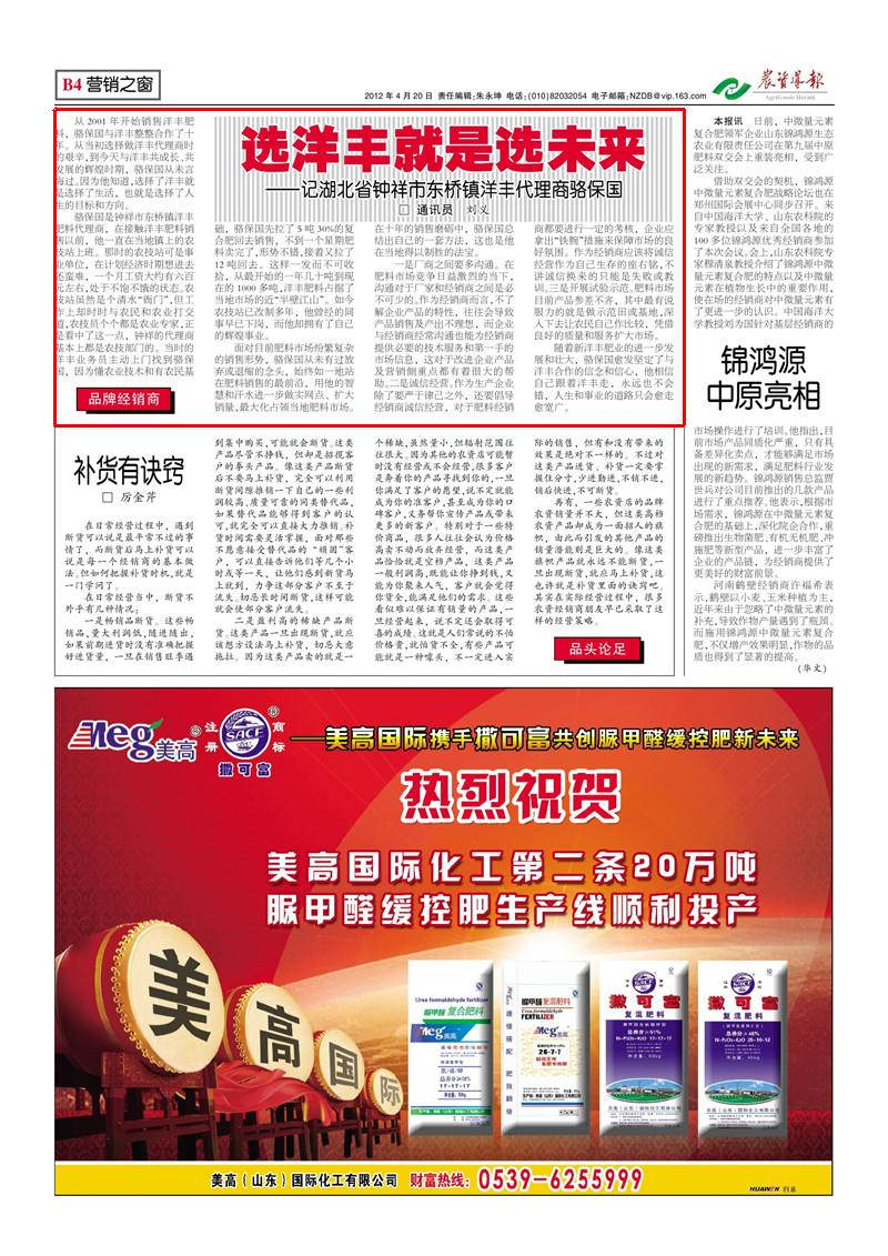 随着伟德国际1946肥业的进一步发展和壮大,骆保国愈发坚定了与洋丰合作的信念和信心,他相信自己跟着洋丰走,永远也不会错,人生和事业的道路只会愈走愈宽广。