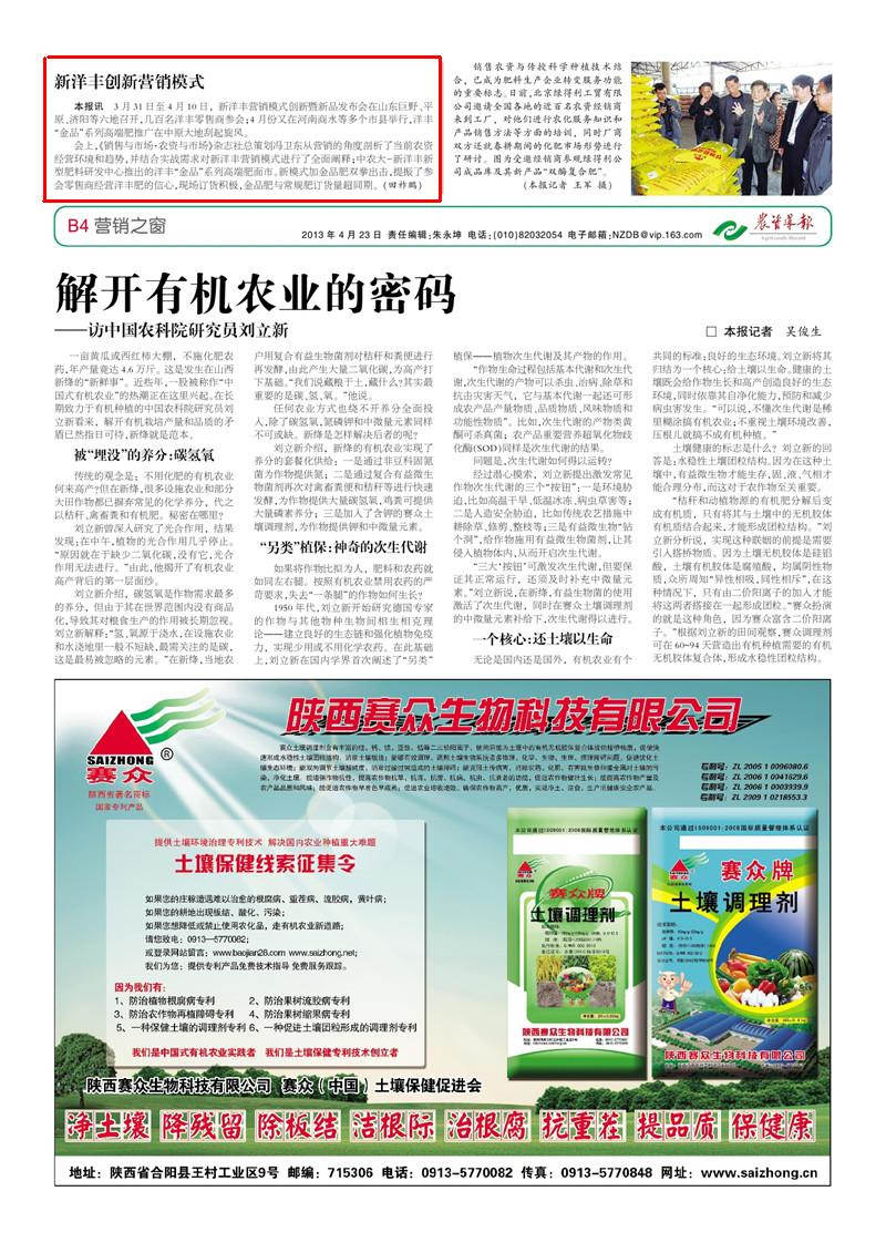 会上,《销售与市场·农资与市场》杂志社总策划冯卫东从营销的角度剖析了当前农资经营环境和趋势,并结合实战需求对伟德国际1946营销模式进行了全面阐释曰中农大-伟德国际1946新型肥料研发中心推出的洋丰野金品冶系列高端肥面市。新模式加金品肥双拳出击,提振了参会零售商经营洋丰肥的信心,现场订货积极,金品肥与常规肥订货量超同期。