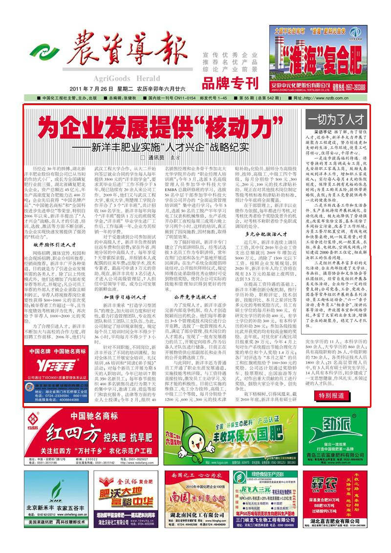 历经近30 年的拼搏,湖北伟德国际1946肥业股份有限公司已从当初的作坊式小厂,成长为全国磷复肥行业前三强、湖北省磷复肥龙头企业,资产总额达45 亿元,年生产高浓度复合肥能力达400万吨;企业先后获得“中国名牌产品”、“中国驰名商标”和“全国科技进步先进单位”等荣誉。特别自2006 年以来,伟德国际1946提出了“人才兴企”战略,在人才的引进、培训、选拔、激活等方面不断创新,为企业实现快速发展提供了强劲的“核动力”。