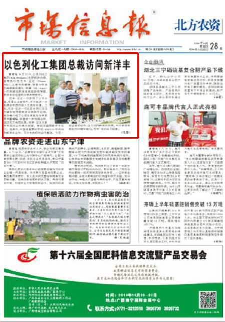8月12日,以色列化工集团(ICL Fertilizers)化肥板块总裁、首席执行官尼辛·亚达(Nissim·Adar),主管市场营销、销售与物流的高级副总裁礼·阿蒙(Eli·Amon)一行到湖北伟德国际1946总部参观考察,伟德国际1946总经理杨华锋热情接待。