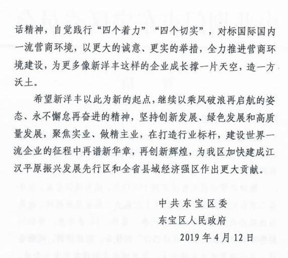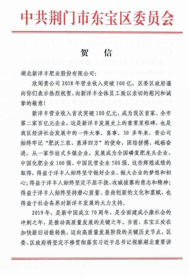 4月12日,湖北伟德国际1946肥业股份有限公司发布公告,2018年伟德国际1946营业收入首次突破百亿大关,达到100.3亿元。当日,东宝区委区政府向伟德国际1946发来贺信,称伟德国际1946营业突破百亿大关,成为东宝区首家、荆门市第二家百亿元企业,是伟德国际1946发展史上的重要里程碑,也是东宝区经济社会发展中的一件大事。