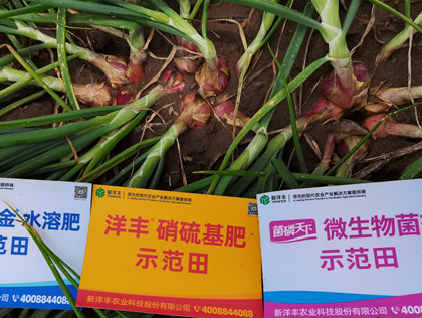 观摩会现场,看着示范田毛葱长势,葱农们频频点头,不断询问蒋亮用肥体验。蒋亮往年用的不是洋丰肥料,后期脱肥现象频出,极大影响了毛葱鳞茎的膨大,进而影响产量。今年3月份,正在他苦恼不已时,伟德国际1946技术服务团队来到他们村,并针对他在毛葱种植中出现的问题,结合公司不同产品的特性及毛葱生长习性,利用硝硫基闪侠、菌磷天下、水白金、福根多等几款功能性肥料制定了伟德国际1946毛葱全程营养方案,并由公司技术顾问吕忠富老师等人全程跟踪技术指导。