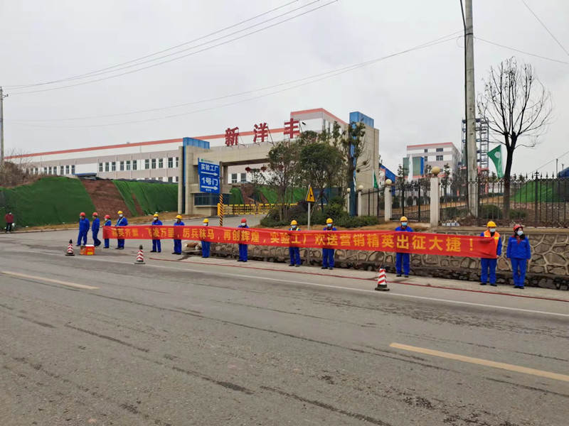 “精英齐聚,飞凌万里,厉兵秣马,再创辉煌。实验工厂欢祝营销精英出征大捷!”“春风吹,战鼓擂,妻儿盼你凯旋还,塑编厂欢送业务精英出征!”“勇士出征赴四方,十里长街齐相送,建材厂欢送营销将士出征!”